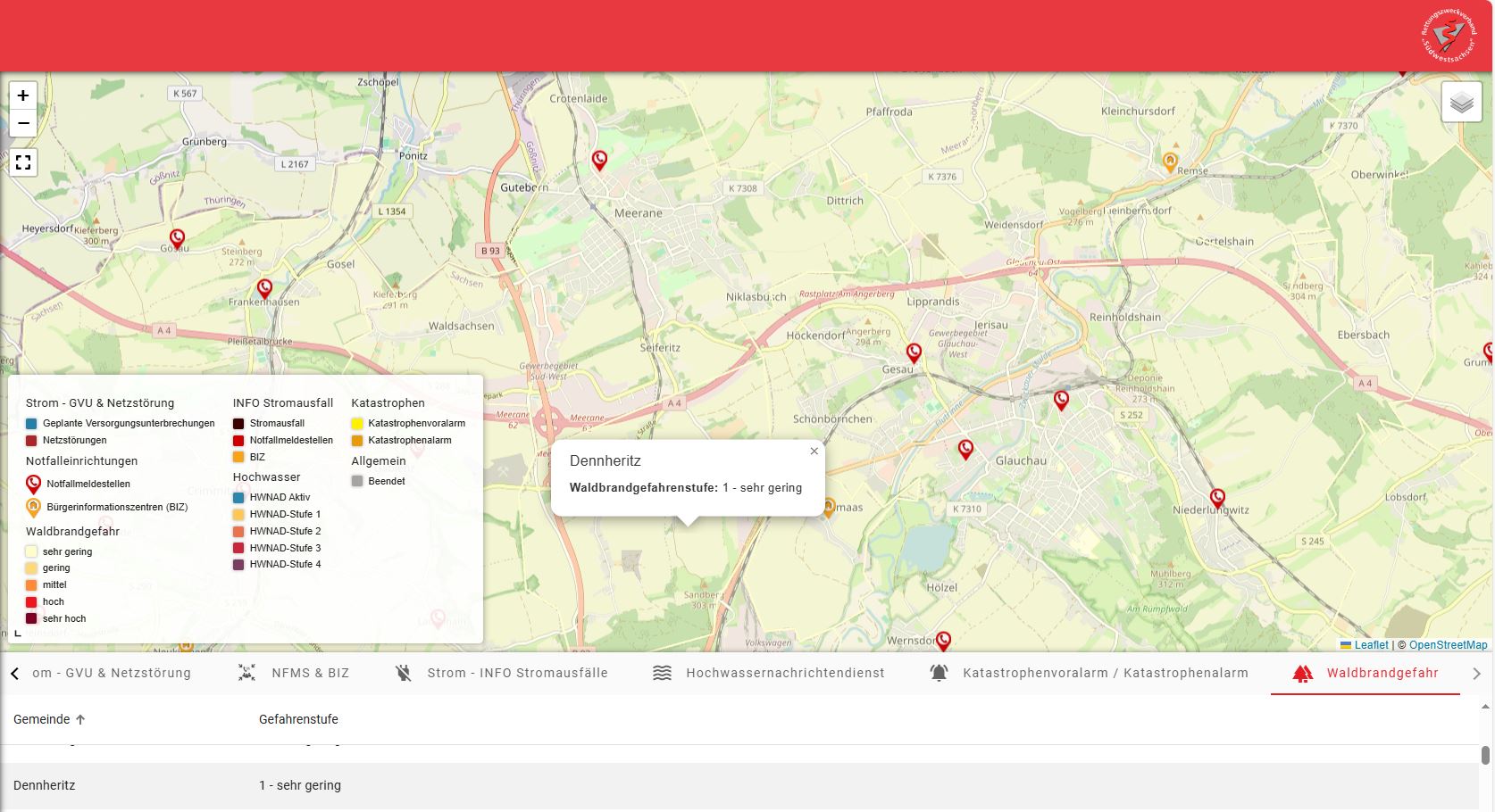 Aktuelle Informationen zu Stromausfällen, Waldbrandstufen oder Hochwasserwarnungen